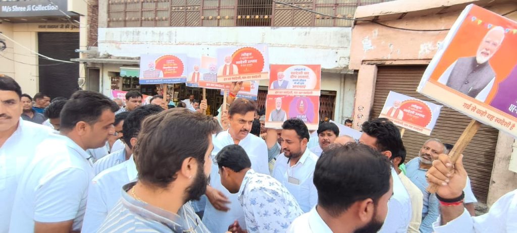 भाजपा के राष्ट्रीय सचिव व राज्यसभा सांसद सुरेंद्र नागर ने नगर गुलावठी में व्यापारियों से संवाद कर स्वदेशी अपनाने की अपील*