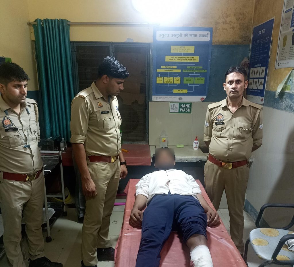 जवाबी कार्यवाही में 15,000/- रूपये का पुरस्कार घोषित बदमाश घायलावस्था में गिरफ्तार, कब्जे से अवैध असलहा, कारतूस, चोरी की बाइक बरामद।