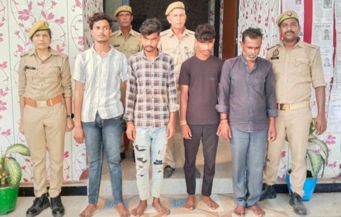आजमगढ़ /सूरज सिंह – जिले के बरदह थाना क्षेत्र में मानवता को शर्मसार कर देने वाली घटना सामने आई, जहां मानसिक रूप से अस्वस्थ युवक को ड्रोन चोर बताकर चार लोगों ने बुरी तरह पीट दिया। घटना की सूचना पर पुलिस ने तत्परता दिखाते हुए अगले ही दिन सभी आरोपियों को गिरफ्तार कर न्यायालय भेज दिया। मिली जानकारी के अनुसार, थाना बरदह क्षेत्र के ग्राम रसूलपुरतुंगी निवासी सहबाज पुत्र आलमगीर ने थाने में तहरीर दी कि उसका भाई अरसे आलम, जो मानसिक रूप से अस्वस्थ है, रविवार की शाम बक्सपुर की ओर गया था। रास्ते में वह देवापुर पोखरे के पास शौच के लिए रुका। इसी दौरान किशन पुत्र रामचन्द्र, नवीन पुत्र मेवालाल, मुनटून पुत्र मंगरु और एक अन्य व्यक्ति ने उसे पकड़ लिया और झूठा आरोप लगाते हुए ‘ड्रोन चोर’ बता दिया। आरोपियों ने युवक के साथ गाली-गलौज करते हुए भीड़ के बीच जमकर मारपीट की और जान से मारने की धमकी देकर मौके से फरार हो गए। घटना की गंभीरता को देखते हुए थाना बरदह पुलिस ने तुरंत कार्रवाई की और वादी की तहरीर पर मुकदमा दर्ज किया। इसके बाद सोमवार को उ0नि0 उमेशचन्द्र यादव मय हमराह टीम ने देवापुर पोखरे के पास दबिश दी और चार आरोपियों को गिरफ्तार कर लिया। गिरफ्तार किए गए अभियुक्तों में किशन पुत्र रामचन्द्र, बाबूलाल पुत्र सोचन, सोनू पुत्र अनिल और राकेश पुत्र मेवालाल शामिल हैं। चारों का चालान कर न्यायालय भेज दिया गया। बरदह पुलिस ने बताया कि इस तरह की अफवाह फैलाने या खुद न्याय करने की कोशिश करने वालों को किसी भी हालत में बख्शा नहीं जाएगा। बरदह पुलिस ने आमजन से अपील की है कि किसी भी असत्य सूचना या अफवाह पर बिना पुष्टि के प्रतिक्रिया न करें। किसी भी संदिग्ध गतिविधि की सूचना तत्काल पुलिस को दें। पुलिस ने चेतावनी दी है कि झूठी सूचना फैलाने वालों पर BNSS की सुसंगत धाराओं में कठोर कार्रवाई की जाएगी।