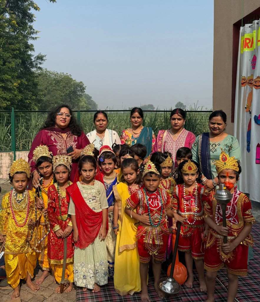 कार्यक्रम की शुरुआत किंडरगार्टन विंग में विशेष दीवाली असेंबली से हुई। नन्हे–मुन्ने बच्चों ने अपने शिक्षकों के साथ मिलकर रामायण पर आधारित सुंदर नाट्य प्रस्तुति दी, जिसमें उन्होंने भगवान श्रीराम, सीता माता, लक्ष्मण जी और हनुमान जी के रूप में अभिनय किया। बच्चों के भोलेपन और सजीव अभिनय ने सबका मन जीत लिया। कार्यक्रम को और भी आकर्षक बनाने के लिए शिक्षिकाओं ने मंच पर संस्कृतिक नृत्य प्रस्तुत किया, जिससे पूरा वातावरण भक्ति और आनंद से भर गया।
