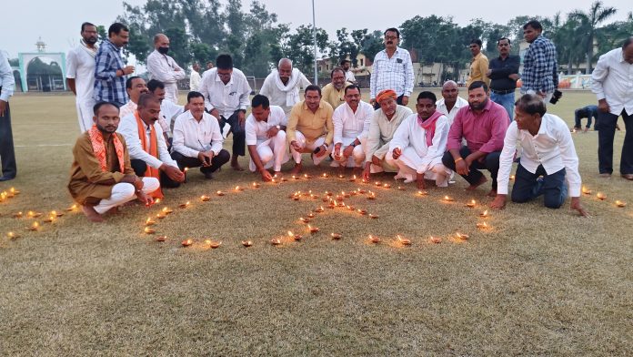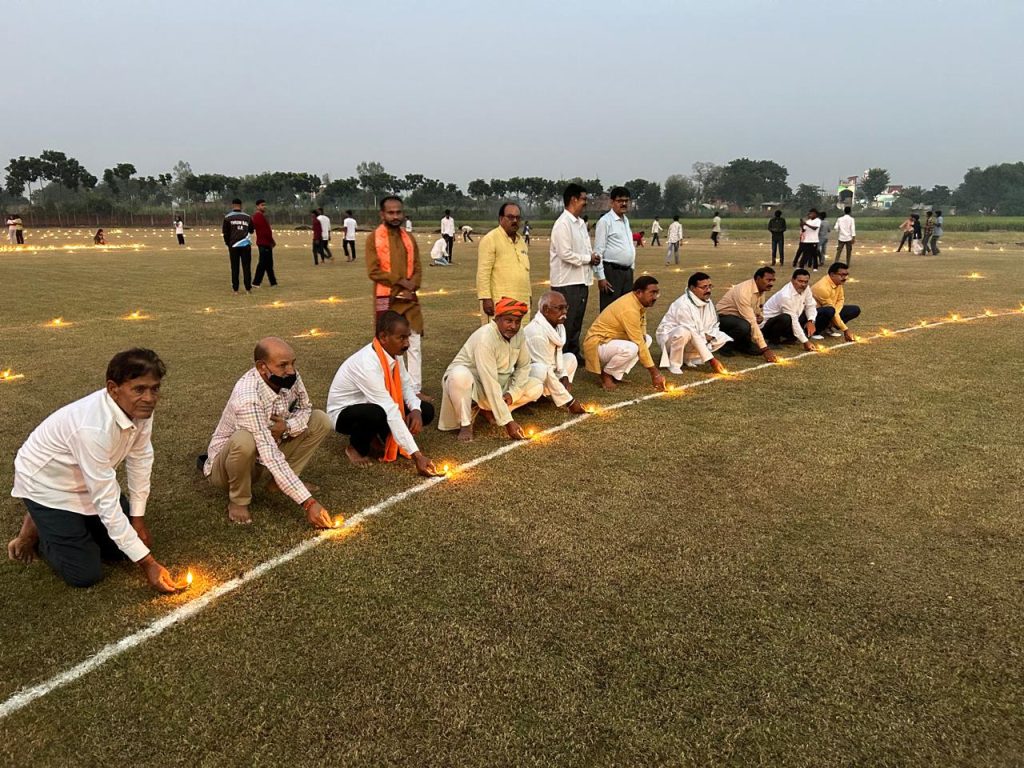 आजमगढ़ के तरवां हॉकी मैदान पर 11000 दीप जलाकर मनाई दीपावली