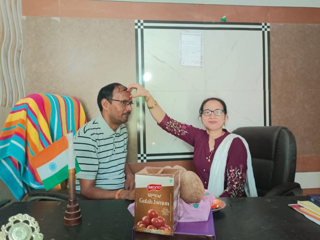 बुलंदशहर भैया दूज के पावन पर्व पर बहन चंचल सिसोदिया, हिमानी चौहान,शिवानी गौर से तिलक कराकर एवं बहनों के चरण स्पर्श कर  रोरा अनूपशहर स्थित कैंप कार्यालय पर बहनों का आशीर्वाद प्राप्त कर ईश्वर से बहन भाई के असीम प्रेम को बनाए रखने की कामना की।