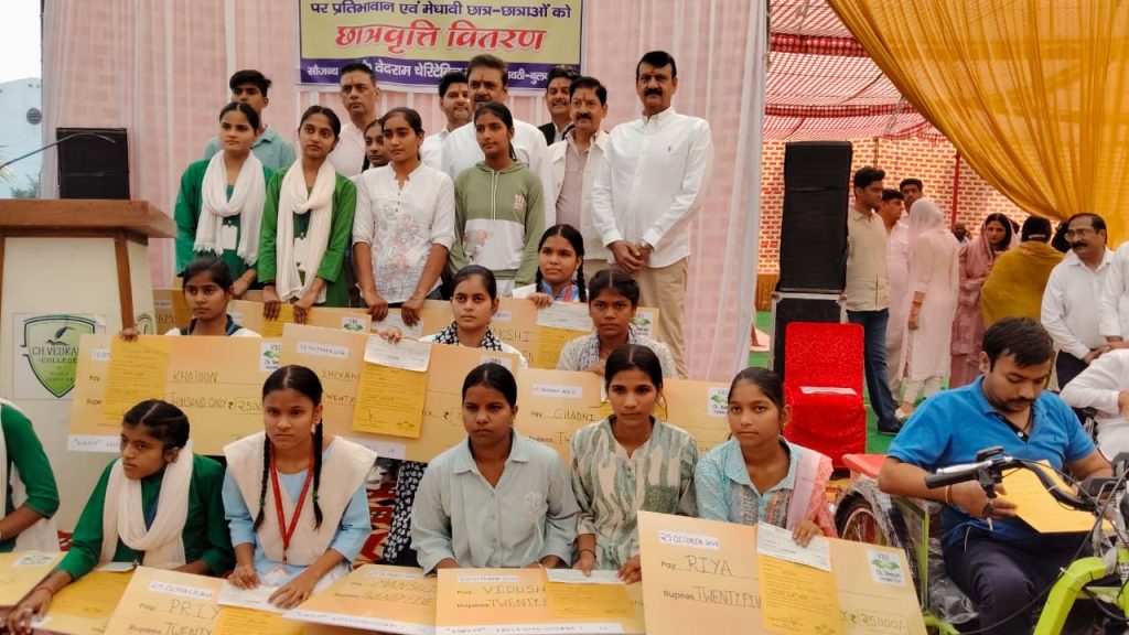 पुण्यतिथि के इस कार्यक्रम में पारस ग्रुप परिवार ने नगर व क्षेत्र की मेधावी 15 छात्राओं व एक छात्र को सम्मानित करते हुए उन्हें 25000 के चेक वितरित किए। व एक दिव्यांग युवक को ई _स्कूटर प्रदान किया।