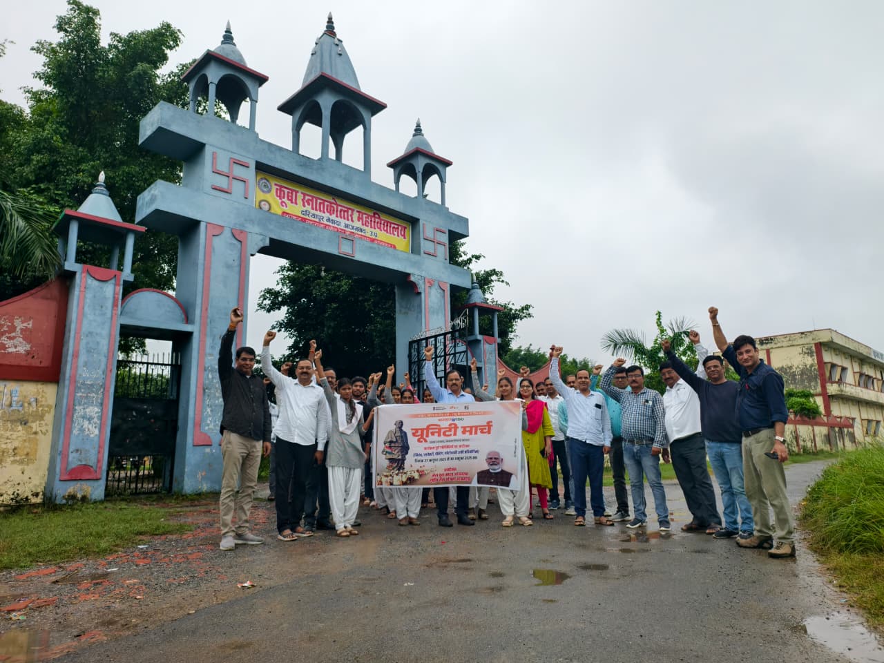 सिधौना/ मेहनाजपुर आजमगढ़। मेहनाजपुरआजमगढ़ के सूरज नाथ सिंह ऑडिटोरियम हॉल में देश के प्रथम उप प्रधानमंत्री एवं गृह मंत्री लौह पुरुष सरदार वल्लभभाई पटेल की 150 जयंती बड़े ही भव्य तरीके से मनाई गई। इस मौके पर एक भव्य सांस्कृतिक कार्यक्रम भी प्रस्तुत किया गया। जिसमें अच्छा छात्र /छात्राओं ने पटेल जी के जीवनी से संबन्धित संक्षिप्त भाषण एकांकी नाटक प्रस्तुत किया गया। कुछ छात्रों ने रंगोली के माध्यम से पटेल जी के छवि को प्रस्तुत किया। इस मौके पर महाविद्यालय के प्राचार्य प्रो० अभिमन्यु यादव, प्रो देवेंद्र प्रताप सिंह, डॉ शैलेंद्र सिंह रघुवंशी, रितेश वर्मा डॉ पंकज पाण्डेय, डॉ राजन पांण्डेय, डॉ राजन पांडेय, डॉ संतोष कुमार उपाध्याय, डॉ दिनेश कुमार यादव, डॉ कुसुम सिंह, डॉ बबीता शुक्ला, कुमारी माला एवं अन्य अध्यापकगण उपस्थित रहे। विद्यालय के गठित न्यायिक मंडल द्वारा प्रतिभागियों में से प्रथम स्थान दीपिका यादव द्वितीय स्थान अभय मौर्या को पुरस्कार देकर सम्मानित किया गया। रन फॉर यूनिट में अधिकांश बच्चों ने बढ़ चढ़कर भाग लिया। कार्यक्रम का संचालन डॉ राणा प्रताप सिंह ने किया।