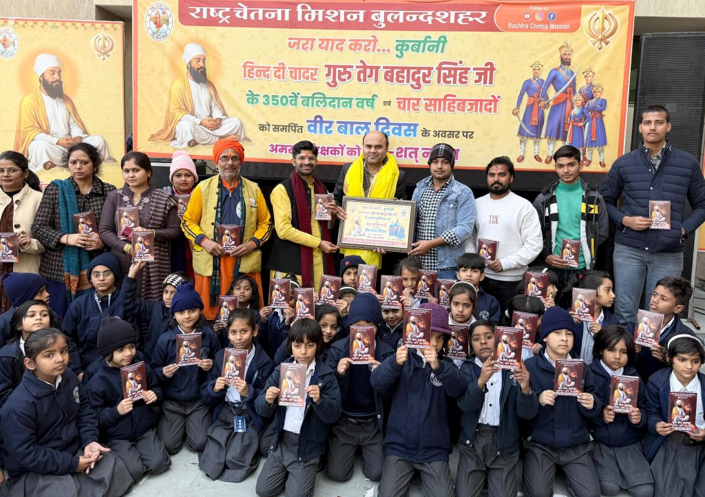 बुलंदशहर। खालसा पंथ के संस्थापक दशमेश गुरु गोबिन्द सिंह जी के चार बेटों सहित अनेक सिख योद्धाओं ने अपने जीवन का बलिदान कर देश और धर्म को बचाया। राष्ट्र चेतना मिशन 11 दिन लगातार विभिन्न स्कूलों के बच्चों को उनकी शौर्य गाथा की याद दिला रहा है।