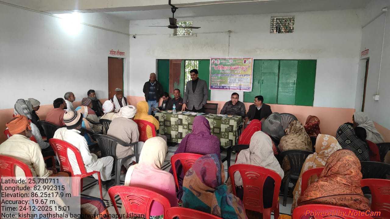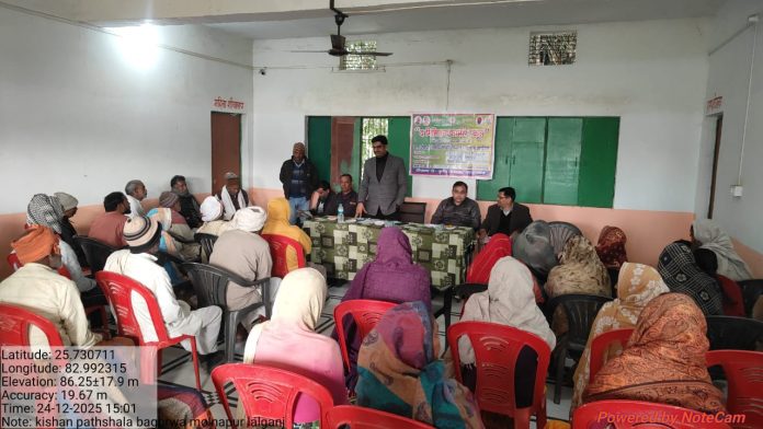 सिधौना मेहनाजपुर – आजमगढ विकासखंड लालगंज के ग्राम बघरवा मोलनापुर में किसान पाठशाला का आयोजन किया गया । जिसमें संयुक्त कृषि निदेशक वाराणसी के द्वारा किसानों को फार्मर मशीनरी बैंक एवं फार्मर रजिस्ट्री के बारे में जानकारी दी गई साथ ही साथ उप कृषि निदेशक आजमगढ़ के द्वारा कृषि विभाग के तहत एफ पी ओ एवम विभिन्न योजनाओं की जानकारी दी गई एवं भूमि संरक्षण अधिकारी के द्वारा खेत तालाब योजना एवं अन्य विभाग योजनाओं की जानकारी दी गई कार्यक्रम का संचालन सहायक विकास अधिकारी रजनीस मौर्या कृषि के द्वारा किया गया । उक्त पाठशाला में राम लखन ग्राम प्रधान अन्य प्रगतिशील कृषक एवम कृषि विभाग के अधिकारी व कर्मचारी एवं ग्रामवासी उपस्थित रहे।