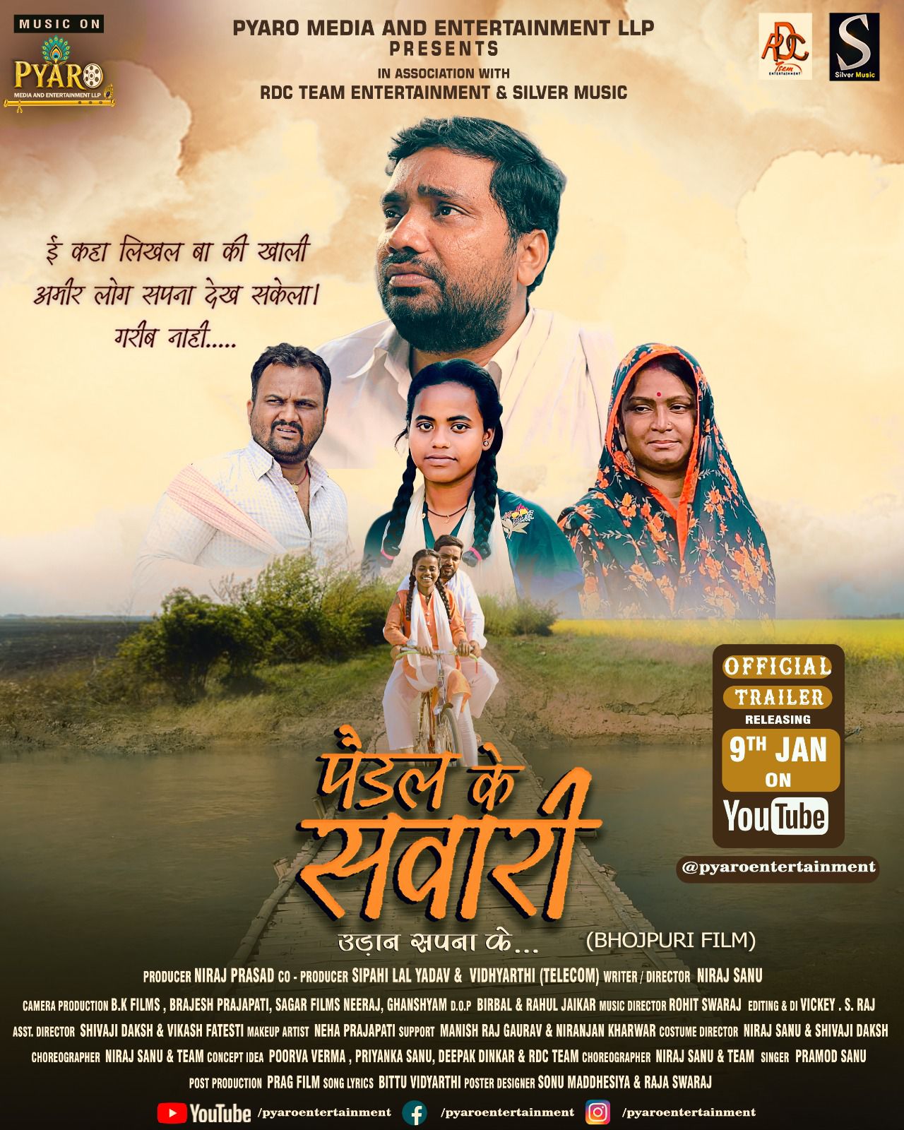 भोजपुरी फिल्म जगत सामाजिक यथार्थ को संवेदनशील अंदाज़ में प्रस्तुत करने आ रही है भोजपुरी फ़िल्म ‘पैडल के सवारी – उड़ान सपना के’ का ट्रेलर आगामी 9 जनवरी को प्यारो एंटरटेनमेंट के ऑफिसियल यूट्यूब चैनल पर रिलीज होने वाला है। इस फ़िल्म की कहानी को प्रभावशाली शब्दों और गहरी संवेदनशीलता के साथ गढ़ा है लेखक व निर्देशक नीरज सानू ने। उनका निर्देशन यथार्थ के बेहद क़रीब है, जो दर्शकों को भावनात्मक रूप से जोड़ने में कामयाब होगी।