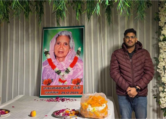चंदौली – आजमगढ़ जिले के तरवां ब्लॉक् स्थित नूरपुर उर्फ भवरपुर उमरी निवासी समाजसेवी व भावी प्रधान प्रत्यासी गौरव सिंह ईशु की नानी का निधन हो गया था | जिनकी तेरहवी अभी बीते दो दिन पहले रहा | बतादे की एक तरफ जहां नजदीकी रिश्तों में भी खटास बढ़ती जा रही है, वहीं एक परपोते ने मधुर रिश्तों की प्रेरणादायक मिशाल प्रस्तुत करते हुए अपनी दादी की तेरही के लिए फिक्स तोड़कर अपनी संपूर्ण जमा राशि (5.40 लाख रुपए) परिवारजनों को दे दी। चंदौली जनपद के महुअर कला गांव में पूर्व जिला पंचायत सदस्य संदीप सिंह फौजी के घर 6 जनवरी को आयोजित तेरही कार्यक्रम ने एक साथ कई रिकॉर्ड तोड़ दिया। संदीप सिंह की दादी मनकीराजी देवी का 110 वर्ष की उम्र में 25 दिसंबर को निधन हो गया था। संदीप सिंह के पुत्र शानू सिंह (18 वर्ष ) का उनकी दादी के साथ गहरा लगाव था। दादी भी शानू को बहुत प्यार करती थी। शानू ने पिछले 4 साल में 5 लाख 40 हजार रुपए की बचत की थी, जो फिक्स डिपॉजिट के रूप में बैंक में जमा थी। शानू ने अदभुत निर्णय लेते हुए अपनी सारी जमा राशि निकालकर परिवार जनों को यह कहकर दे दी कि दादी को श्रद्धांजलि देने का इससे बढ़िया काम क्या हो सकता है? 6 जनवरी को आयोजित तेरही कार्यक्रम ने भी एक रिकॉर्ड बना दिया। करीब 15,000 लोग शामिल हुए। पूर्व केंद्रीय मंत्री महेंद्र नाथ पांडे से लेकर मुंबई के सुप्रसिद्ध समाजसेवी शिक्षा सम्राट लल्लन तिवारी, विधायक सुशील सिंह से लेकर जिला पंचायत अध्यक्ष छत्रबली सिंह के अलावा अनेक जाने-माने लोग तेरही कार्यक्रम में शामिल होकर स्व. मनकीराजी देवी की तस्वीर पर श्रद्धा सुमन अर्पित किया।