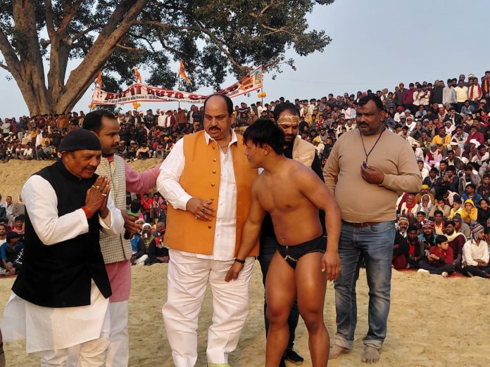 स्वर्गीय किशोर सिंह जी स्मारक नारायन पुर जियापुर मे विशाल दंगल समारोह