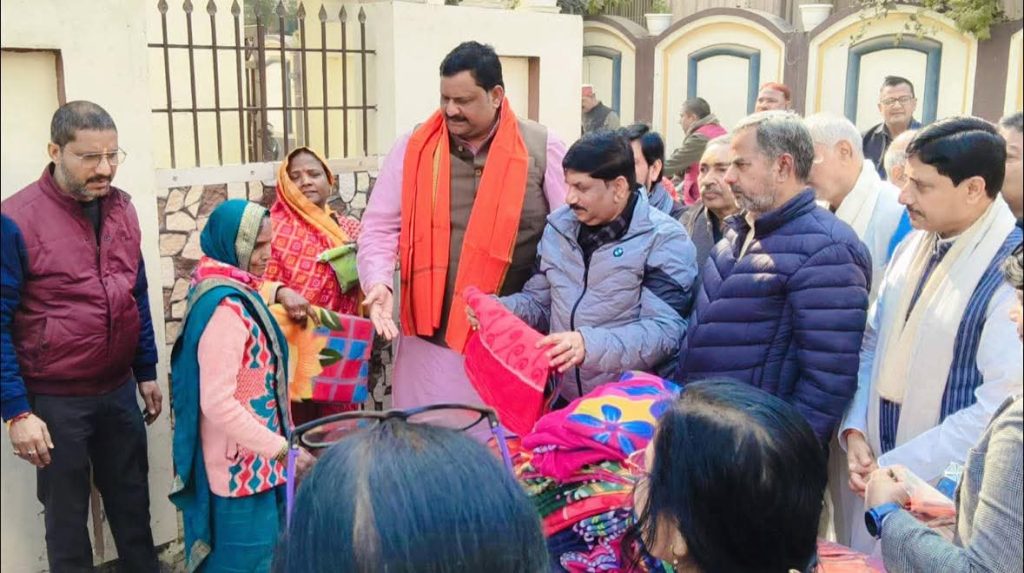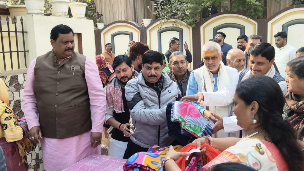 वाराणसी – कड़ाके की ठंड को देखते हुए भारतीय जनता पार्टी महिला मोर्चा की महानगर महामंत्री ने जरूरतमंदों को कंबल वितरित किए। महिला मोर्चा की महानगर मंत्री वाराणसी रिचा सिंह के आवास पर कंबल वितरण के कार्यक्रम का आयोजन किया जिसमे मुख्य अतिथि के रूप में भाजपा के वाराणसी महानगर अध्यक्ष प्रदीप अग्रहरि मौजूद रहे और रिचा सिंह के साथ जरूरतमंद लोगों को अपने हाथों से कंबल वितरण किया ।