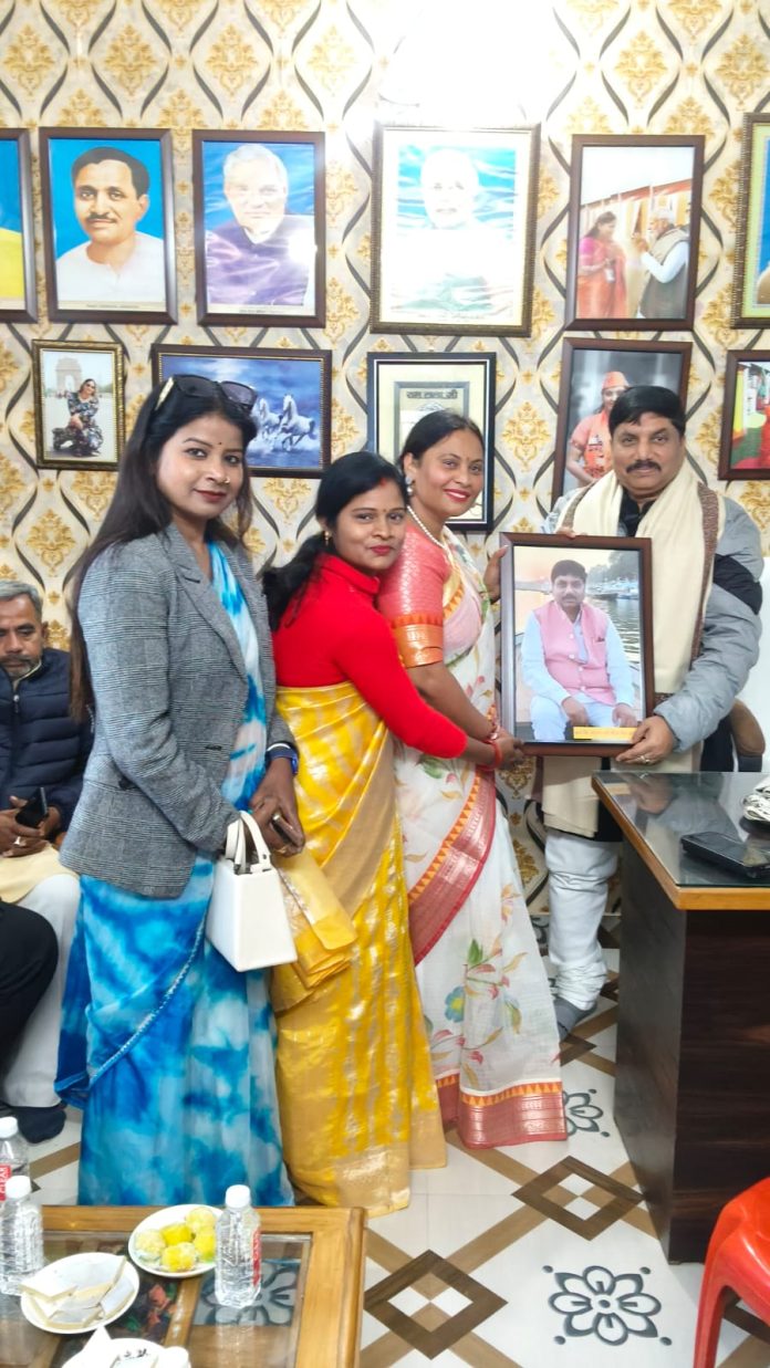 इस दौरान वहां पर मुख्य रूप से कार्यक्रम मे उपस्थित सदस्य (खादी एवं ग्रामोद्योग भारत सरकार उत्तर जोन )जिला प्रभारी भदोही नागेन्द्र रघुवंश, महानगर अध्यक्ष महिला मोर्चा कुसुम सिंह पटेल , उत्तरी विधानसभा के सयोजक अरविंद सिंह ,जयप्रकाश सिंह ,राजीव सिंह, चंद्रशेखर उपाध्याय , पार्षद अशोक मौर्य, , पार्षद मदन मोहन दुबे , पार्षद संदीप रघुवंशी, राजर्षि मंडल के अध्यक्ष विवेक पांडे, मंडल उपाध्यक्ष उमेश ,सुनील सोनकर, शोभा सिंह, उमा सिंह, मंजू सिंह, प्रीति सिंह, संगीता पटेल, पूजा गिरी,, सुषमा सिंह, उषा सिंह एवं सभी महानगर के सम्मानित पदाधिकारी एवं मंडल के सम्मानित पदाधिकारी गढ़ मौजूद रहे । महिला मोर्चा की महानगर मंत्री रिचा सिंह ने कार्यक्रम में आए सभी लोगो का आभार व्यक्त किया ।