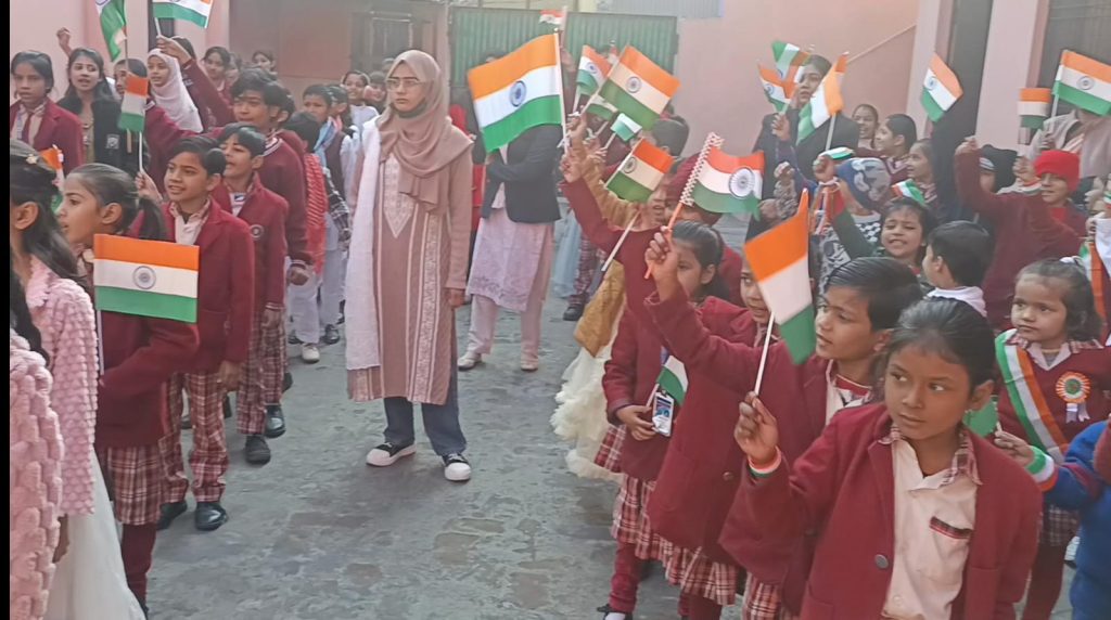 का संविधान डॉ०भीमराव अम्बेडकर द्वारा तैयार किया गया जिसको 26 जनवरी सन 1950 को लागू किया गया। जिसको हम गणतंत्र दिवस राष्ट्रीय पर्व के रूप में एक साथ मनाते है। हमारे देश को अंग्रेजों की गुलामी से आजाद कराने के लिए जिन महापुरुषों ने अपनी जान का बलिदान दिया है। उनको हमें सत सत नमन करना चाहिए जिन्होंने हमको आजादी विरासत में दे दी। वहीं स्कूली बच्चों में मरियम फात्मा, फ्लोरेंस, नूर सैफी, जिक्रा अंसारी, हुमेरा अंसारी, तनिष्का सिंह, विंध्याकौर, अलीशा सैफी,फरिहा, आलिया गाजी, अलीका, भव्या शर्मा, आलिया, अरीबा, जैनब, शाद, समर, अजहर, सैफ, इब्राहीम, अबूबकर, खुशी, रुमायशा, उमर आसिफ, आयशा, तनिष्का, किन्जा, मोनिका, अयान आदि स्कूली बच्चों ने अपने डांस व अन्य प्रस्तुति प्रस्तुत की उस समय स्कूली स्टाफ में तहसीम मेम, फौजिया मेम, साबिया मैम, मीनाक्षी मेम, नेहा गुप्ता, प्रियंका गौतम, यास्मीन सैफी, शबेनूर,शिफा, खुशबू आदि स्कूली स्टाफ मौजूद रहा।
