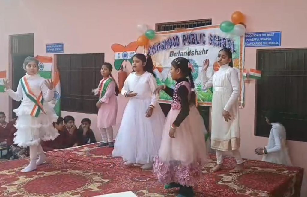 बुलंदशहर। नगर के दिल्ली रोड भूड पर स्थित किंग्सबुड पब्लिक स्कूल में 77 वा गणतंत्र दिवस समारोह स्कूली बच्चों ने बड़े हर्षौल्लास से रंगारंग कार्यक्रम प्रस्तुत कर उपस्थितजनों को मंत्रमुग्ध कर दिया। वहीं प्रात:स्कूली प्रांगण में कानपुर से आई मुख्य अतिथि सूफिया परवीन ने स्कूली प्रबंधक आसिफ नदीम के साथ ध्वजारोहण किया। तत्पश्चात राष्ट्रीय गान के बाद स्कूल के एडमिनिस्ट्रेटर पत्रकार फरीद अंसारी व प्रधानाचार्य उमेश राजपूत ने संयुक्त रूप से बच्चों को संबोधित करते हुए कहा कि सन 1949 में देश