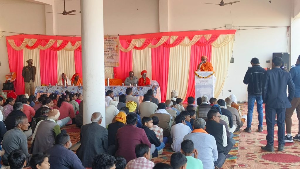 पंचायती महा निर्माण अखाड़ा और विश्व हिंदू परिषद के केंद्रीय मार्गदर्शक महामंडलेश्वर स्वामी डॉ सुरेंद्रानंद गिरी मुख्य अतिथि उन्होंने कहा कि हिंदू धर्म के लोगों को जातियों में ना भटक कर एकजुट होकर सिर्फ हिंदू बनना चाहिए उन्होंने प्रत्येक व्यक्ति को हिंदू धर्म की जानकारी होने की आवश्यकता पर बल दिया और कहा कि अब कट्टर हिंदू बनने की आवश्यकता है तथा हिंदुओं को शास्त्र की जगह शस्त्र की आवश्यकता है।