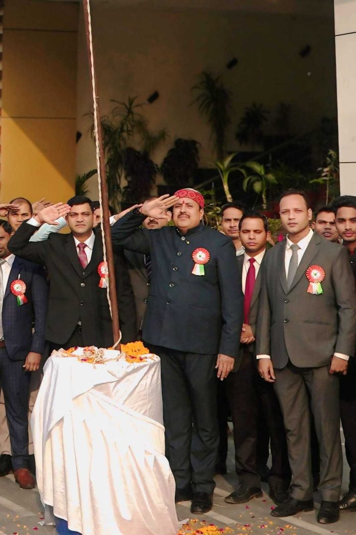 आइडियल जर्नलिस्ट एसोसिएशन के प्रमुख राष्ट्रीय महासचिव साहित्यकार संजय कुमार पांडे सरस द्वारा फहराया गया राष्ट्रीय ध्वज