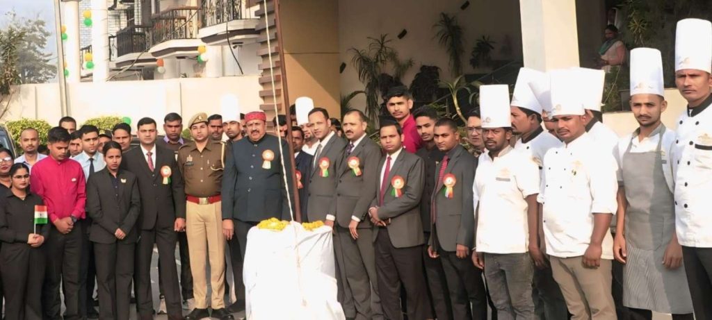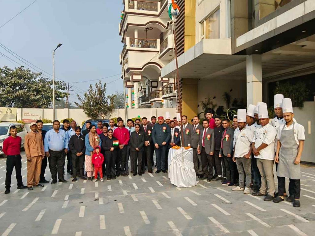 आजमगढ़ / सूरज सिंह – 77 वें गणतंत्र दिवस के अवसर पर जनपद के प्रतिष्ठित होटल होटल गोल्डन फॉर्चून पर आइडियल जर्नलिस्ट एसोसिएशन के प्रमुख राष्ट्रीय महासचिव साहित्यकार संजय कुमार पांडे सरस द्वारा राष्ट्रीय ध्वज फहराया गया। तत्पश्चात उपस्थित लोगों द्वारा राष्ट्रगान प्रस्तुत किया गया 26 जनवरी जिंदाबाद भारत माता की जय के नारे लगाए गए।