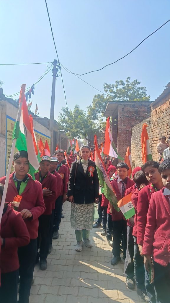 रामघाट/बुलंदशहर/ ग्राम जरगवां में दधीच मैमोरियल सीनियर सेकेंडरी स्कूल में 77 वें गणतंत्र दिवस के अवसर पर विद्यालय प्रबंधक प्रमोद कुमार राजपूत, प्रधानाचार्यो कविता रानी, उपनिरीक्षक एम एस सिंह व प्रदीप कुमार थाना रामघाट एवं अतिथि गणों ने सामूहिक रूप से ध्वजारोहण किया। छात्र-छात्राओं ने सर्वप्रथम बैंड के साथ परेड करके अतिथियों का धूमधाम से स्वागत किया। इसके उपरांत प्रबंधक, प्रधानाचार्या एवं शिक्षक गणों ने छात्र-छात्राओं को गणतंत्र दिवस के विषय में जानकारी दी। इसी दौरान नन्हे छात्र-छात्राओं ने इस कार्यक्रम में बैंड के साथ परेड, फ्लैग स्केटिंग, सैनिक व पुलिस का रोल कर बाइक से पेट्रोलिंग की प्रस्तुति दिखाकर अतिथि गणों एवं दर्शकों का मन मोह लिया। इसके बाद बैंड के साथ लगभग 500 छात्र-छात्राओं ने तिरंगा यात्रा निकाली जो कि नगला कोठी, जरगवां से होती हुई सिद्ध बाबा धाम आश्रम एवं सिद्ध बाबा फिजिकल अकैडमी अछोड़ा पर समापन किया गया।आश्रम के महंत श्रीकांताचार्य महारा द्वारा इस तिरंगा यात्रा का भव्य स्वागत किया और सभी को प्रसाद एवं भोजन कराकर आश्रम पर भी एक सांस्कृतिक कार्यक्रम का आयोजन किया जिसमें छात्र-छात्राओं द्वारा सरस्वती वंदना, स्वागत गान, नृत्य प्रस्तुति एवं प्रेरणादायक भाषण अतिथिगणों के समक्ष प्रस्तुत किए।