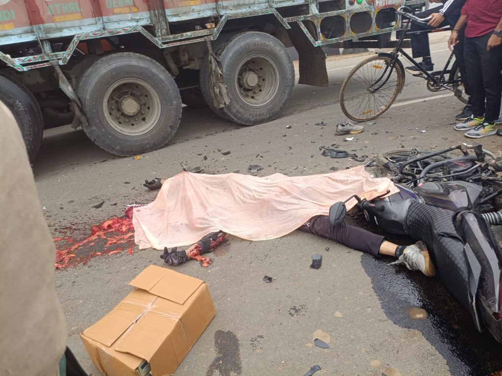 डंपर ने बाइक सवार युवक को रौंदा, मौके पर दर्दनाक मौत।