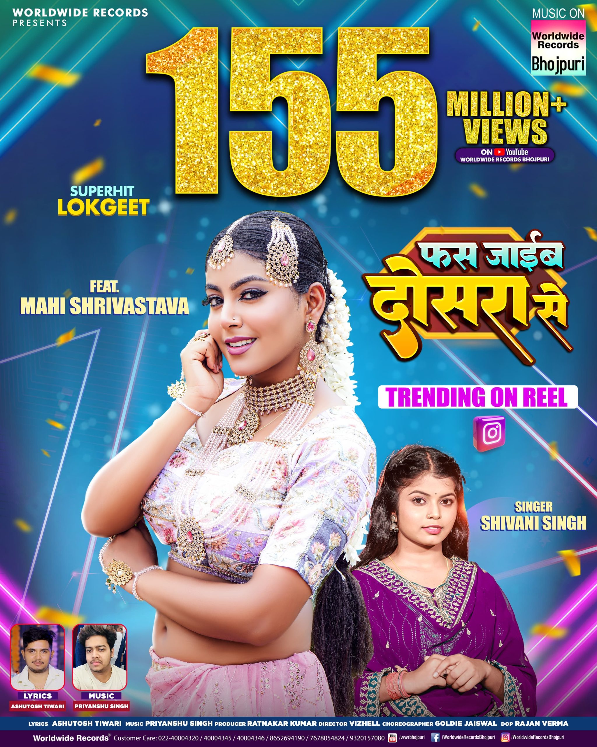 गायिका शिवानी सिंह और अभिनेत्री माही श्रीवास्तव का भोजपुरी लोकगीत ‘फस जाईब दोसरा से’ ने 155 मिलियन व्यूज का जादुई आंकड़ा किया पार