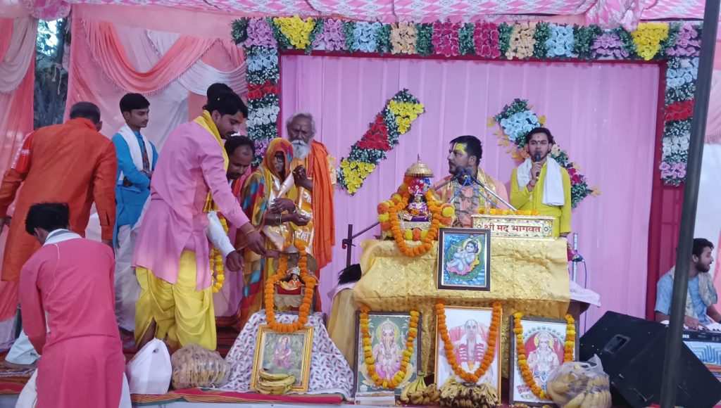 ग्राम ईमलों पांडेय पट्टी जौनपुर में श्रीमद् भागवत कथा का तीसरा दिन।